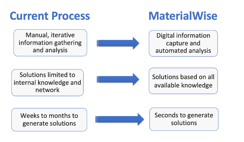 MaterialWise is revolutionizing how companies think about waste. Our AI powered platform analyzes your data to customize innovative solutions for your waste. Through our platform, we can gain insights to your operations at the granular level not previously available in the industry. And help you optimize your waste management system, increase value of your materials, and future design of circular products